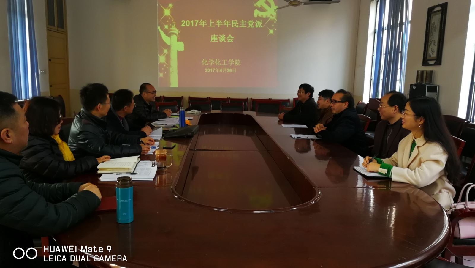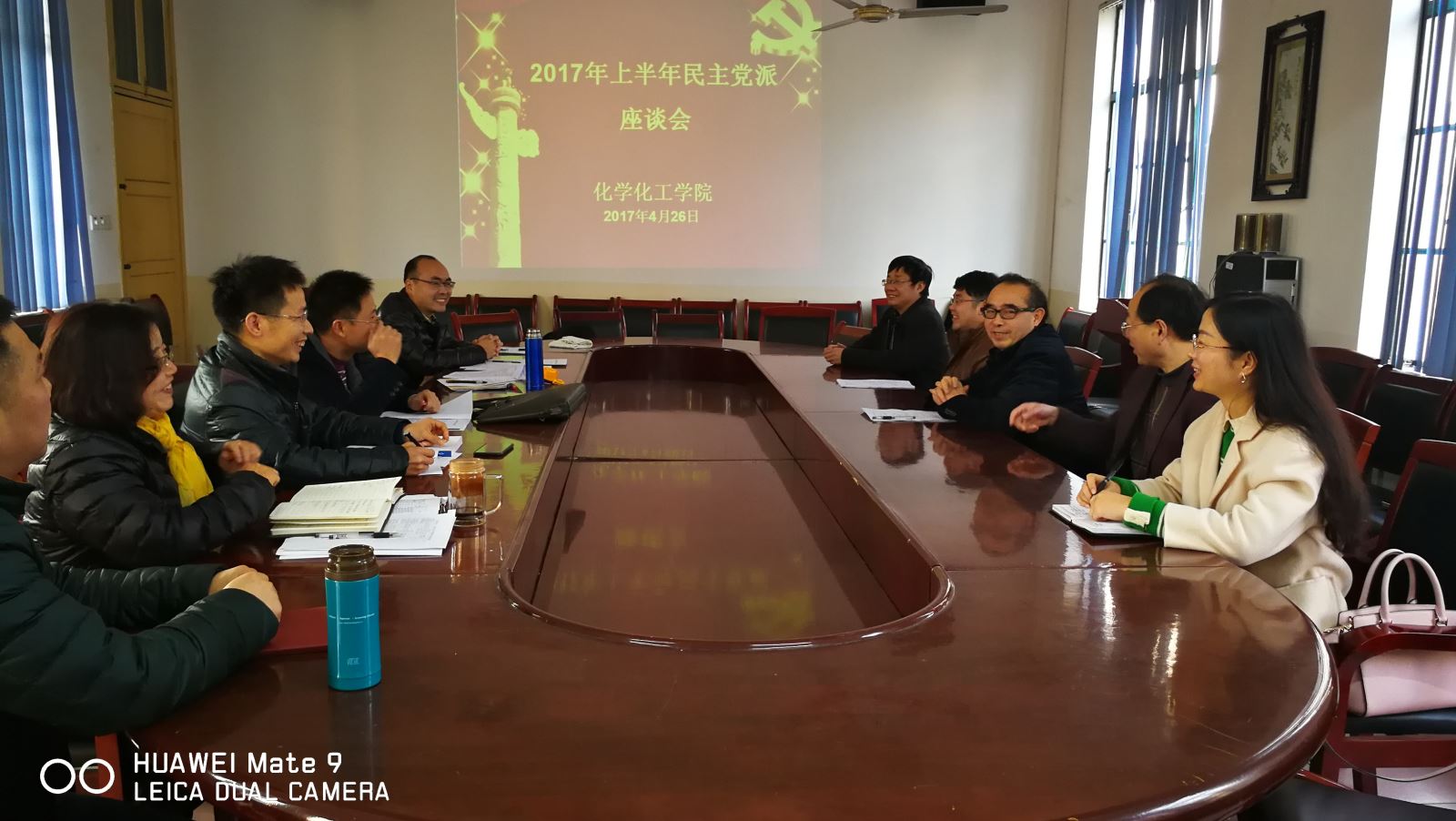 2017年4月28日下午化学化工学院党总支部在四教306会议室举行民主党派座谈会,学院党总支部书记胡爱钦,总支部委员副院长张何出席座谈会。