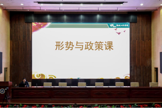12月15日下午,我校2020级部分学生在一报告厅同上一堂形势与政策课。党委副书记、校长易兵教授以《以习近平总书记教育重要论述为根本遵循,打造一流本科教育,培养社会主义建设者和接班人》为题,从学生与学校两个层面深刻分析如何深入贯彻学习习近平总书记关于教育的重要论述,将习近平新时代中国特色社会主义思想扎实落地学校,为学生扣好人生的第一粒扣子。