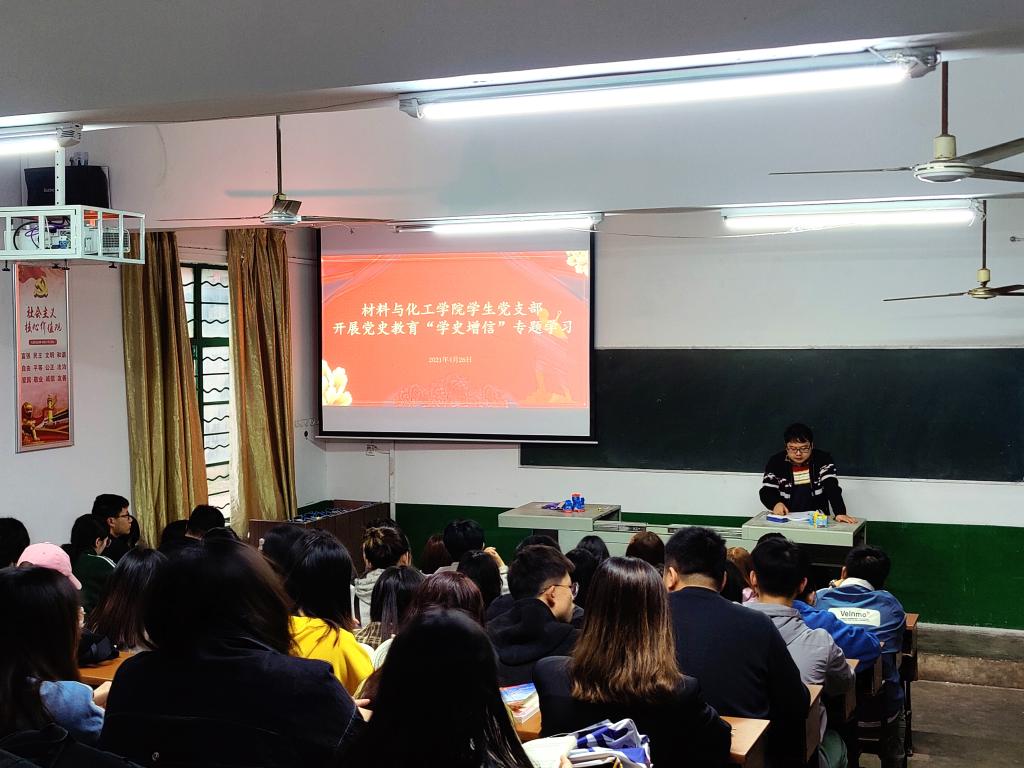为深入推进党史学习教育,引领学生党员知史爱党、知史爱国,4月26日下午,材料与化工学院学生党支部围绕“学史增信”开展党史学习教育。