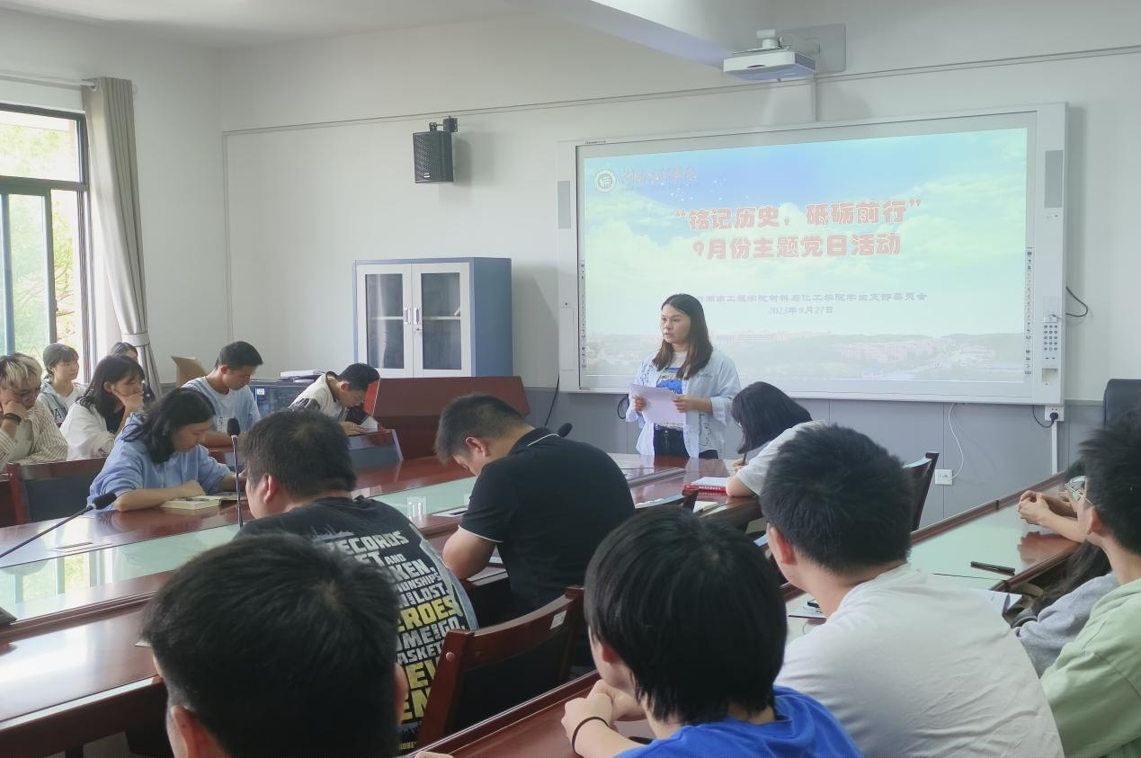为纪念中国人民抗日战争暨世界反法西斯战争胜利78周年,引导党员同志深入了解这一历史事件对中国和世界产生的深远的影响,回顾历史,汲取其中的教训,继续传承和弘扬伟大抗战精神,9月27日中午,材料与化工学院学生党支部在新化工楼304开展9月“一月一课一片一实践”主题党日活动。