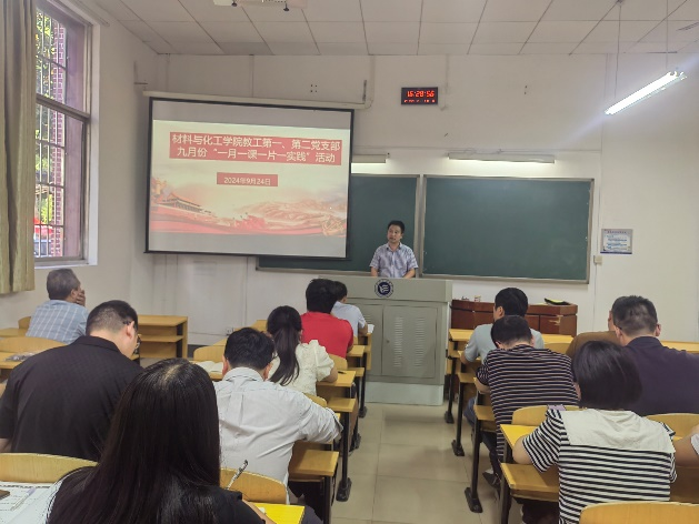 为认真学习贯彻党的二十届三中全会精神,善始善终抓好党纪学习教育,深刻领会习近平总书记关于全面深化改革的一系列新思想、新观点、新论断,不断增强党的创造力、凝聚力、战斗力。9月24日,材料与化工学院教工第一、第二党支部在红楼102开展以学习贯彻党的二十届三中全会精神、党纪学习教育总结为主题的9月份“一月一课一片一实践”的主题党日活动。