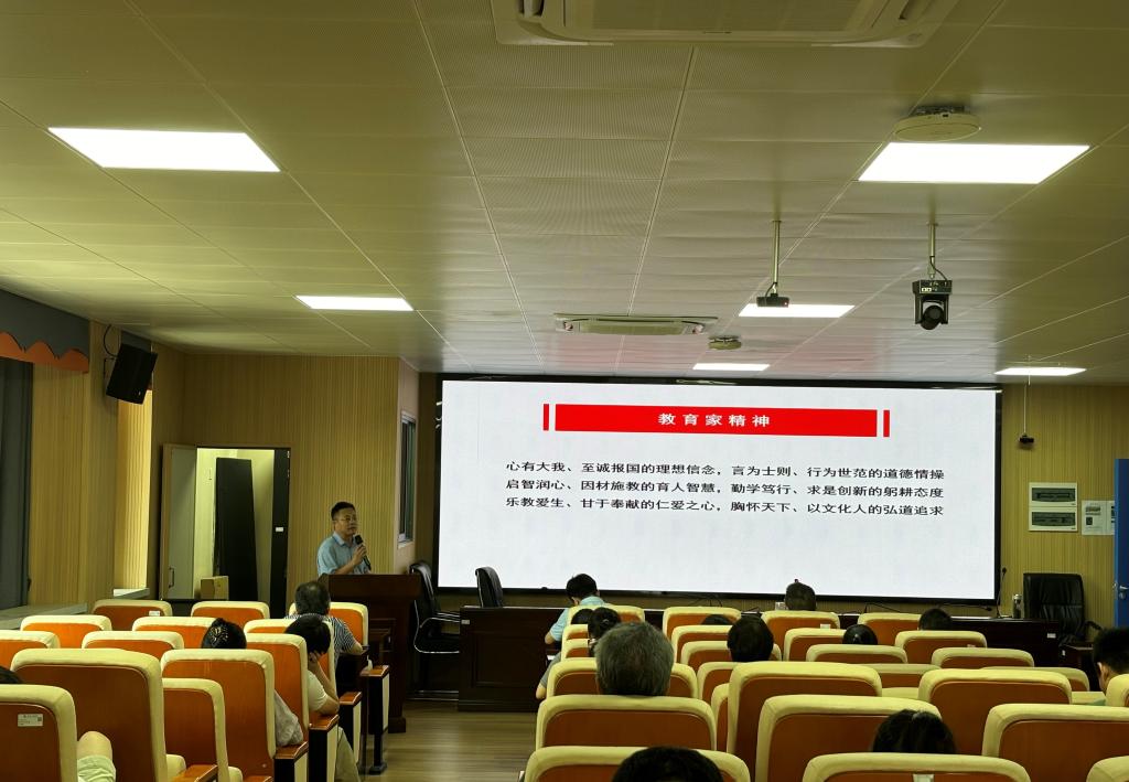 随后,学院党委副书记陶连洲为所有教职工上了一堂题为《弘扬教育家精神,担当新时代使命》的生动党课。他阐述了教育家精神的核心内涵:“心有大我,至诚报国的理想信念;言为士则,行为世范的道德情操;启智润心、因材施教的育人智慧;勤学笃行、求是创新的躬耕态度;乐教爱生,甘于奉献的仁爱之心;胸怀天下,以文化人的宏道追求。”鼓励全体教师相互支持,共同进步,为教育事业的高质量发展不懈奋斗。