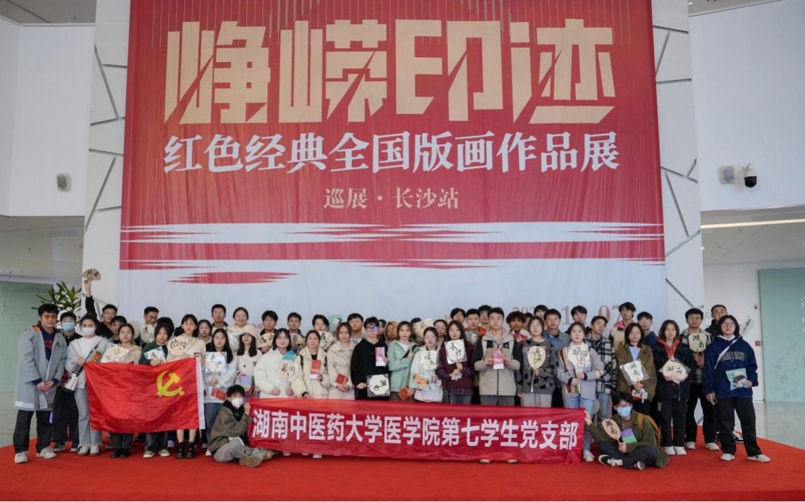为推动高校党团班组织在青年工作中发挥积极作用,促进党建工作与青年工作相互融合,深化“医学生适应性教育”的组织建设,传承红色基因,落实学校“新时代学生工作实践工程项目”要求。11月25日,医学院第七学生党支部联合临床医学2022级、2023级专业班级团支部来到湖南美术馆参观“峥嵘印迹——红色经典全国版画作品展”并开展党史学习,辅导员颜晔老师为同学们做一堂“美育与党史融合的思政课”。