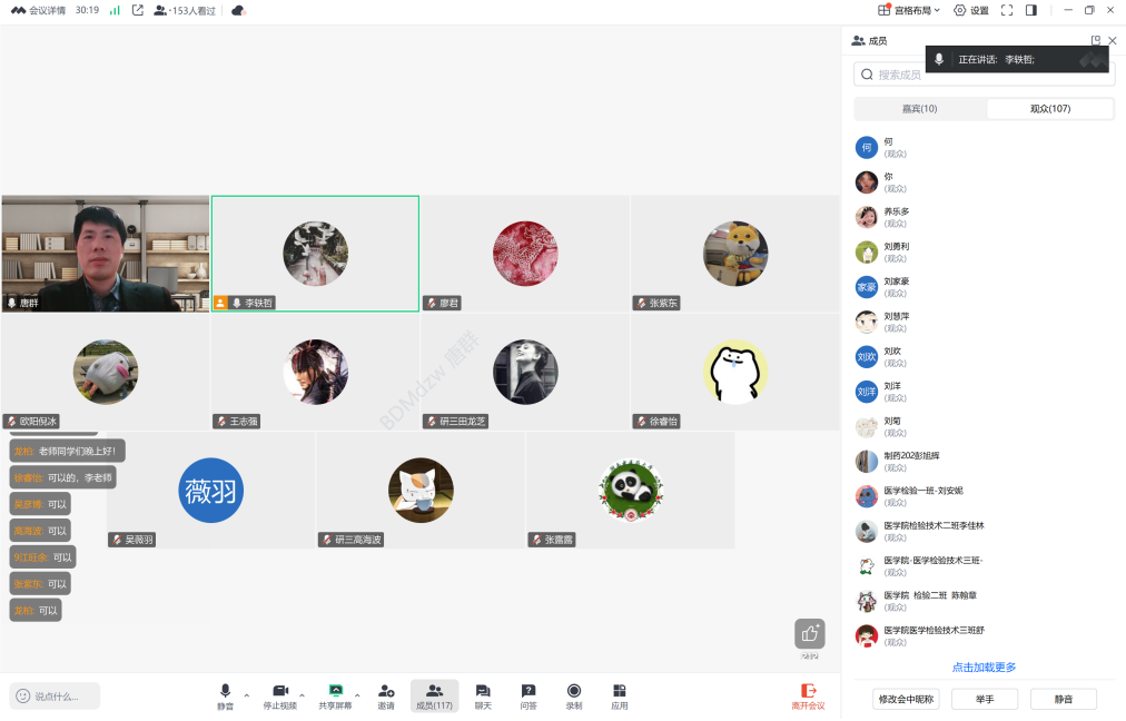 学习雷锋好榜样,三月花开助人乐。为弘扬雷锋精神,着力提升研究生党员的服务意识和奉献精神,进一步推动我院基础医学研究生招生工作,3月16日晚,医学院研究生党支部开展特色主题党日活动,举办基础医学硕士研究生复试交流会。本次交流会通过腾讯会议进行,会议由支部书记李轶哲主持,医学院副院长唐群、基础医学硕士研究生导师、科教科老师等共同参与,本次交流会吸引了校内外100余名学生的积极响应参与。交流会上,唐群首先介绍了基础医学硕士点的培养目标与标准、师资力量、科研条件以及就业前景,并着重强调了学院在基础医学人才培养方面的特色与优势,为考生提供了全面深入的专业信息,帮助考生更好地了解我院基础医学办学特色。