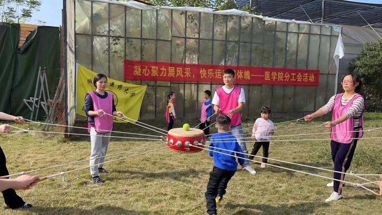 为进一步学习贯彻落实党的二十大精神,丰富教职工课余文体生活,提升集体荣誉感与合作意识,医学院分工会于11月20日在沃之园生态农庄开展“凝心聚力展风采,快乐运动强体魄”团建活动。活动主要分为“同心鼓”、“飞盘投掷赛”、“旱地冰壶”三个环节,内容精彩纷呈、扣人心弦,大家都表现出极高的参与热情。