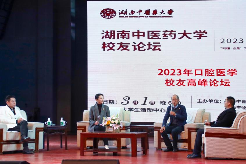 3月1日晚,湖南中医药大学2023年口腔医学校友高峰论坛于含浦校区学生活动中心成功举办。我校校友会办公室主任杨军辉,医学院党委副书记任婷及口腔医学专业师生300余人共同参与此次讲座。讲座由德皓口腔董事长毛斌、牙白兔口腔董事长赵木川及雅贝康口腔集团运营总裁刘政担任主讲。