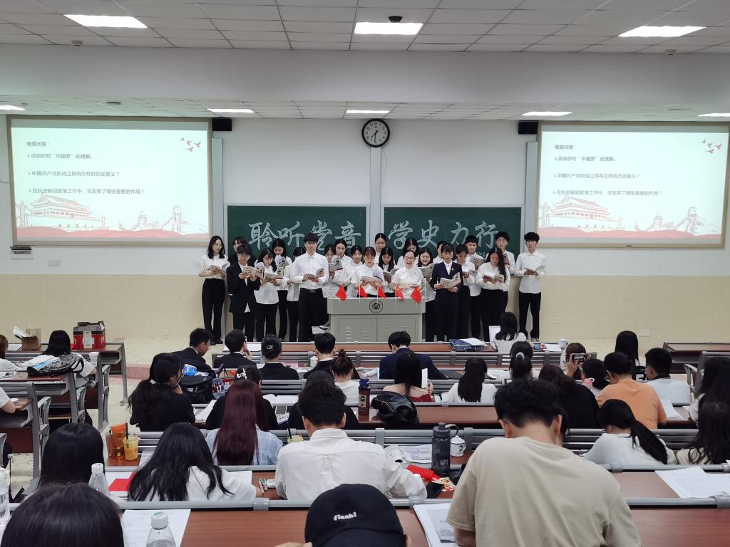为扎实推进党史学习教育走深走实,6月7日,医学院第一学生党支部聆听党音之“学史力行”主题党日活动于第三教学楼3312教室举行,本次活动有医学院第一学生党支部书记刘莉老师、第一学生党支部学生党员及预备党员共107人参加。