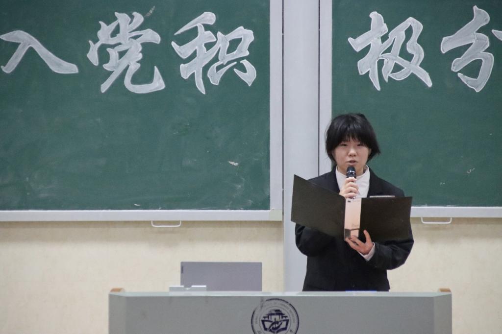 学员代表尹姝妮发言,她表示,作为入党积极分子和医学生,应当做到以下几点:坚定信念,明确目标;认真学习,提升自我;实践锻炼,锤炼品格;严于律己,争做表率;展望未来,砥砺前行,为中华民族伟大复兴贡献自己的力量。