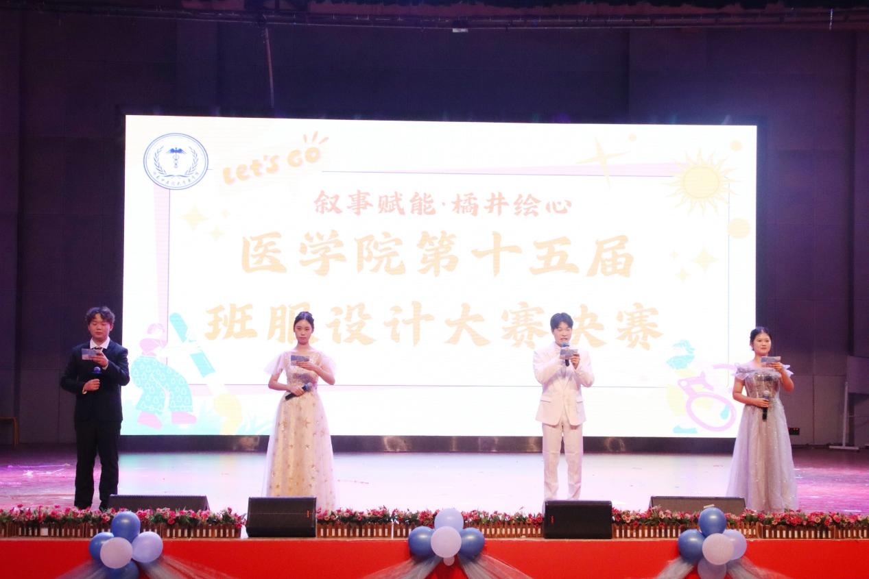 11月26日晚7时,湖南中医药大学医学院第十五届班服设计大赛决赛于含浦校区学生活动中心顺利举行。医学院党委副书记刘莉,学生管理科科长苏醒,团委书记廖海燕,学生管理科教师代表,各参赛班级班主任,第十五届团委、学生会主席团、各部门部长及医学院本科学生党群服务中心主任团、合欢花工作室主任团,2025级各班学生代表共同参与本次活动。