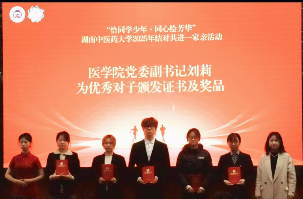 为搭建朋辈互助平台、党团共建的成长平台、弘扬中华民族共同体意识,12月26日上午9:30,湖南中医药大学2025-2026学年“恰同学少年·同心绘芳华”结对共进一家亲活动在国际交流中心学术报告厅举行。活动由学工部主办、合欢花工作室承办,学工部部长朱久宜,宣传统战部副部长杨晓溪、学生工作部副部长李玉冰等校院领导及8个学院新生辅导员出席,全校72名优秀党员与72名少数民族新生结成对子。