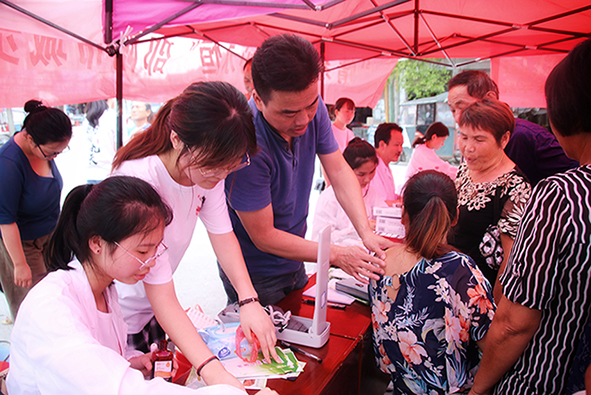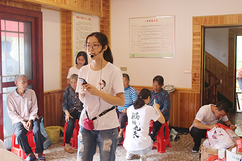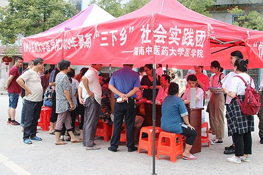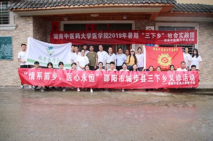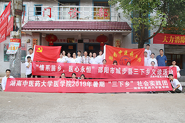 秉承“中医药文化进农村”和“健康美齿驻乡村”的宗旨,给贫困地区送去爱心与温暖,以及经典的中医文化和专业的口腔护理知识,同时提高我院学子对“社会主义新农村”建设积极性,激发爱国爱党、奉献社会的情感。7月5日至6日,24名医学院志愿者共赴城步苗族自治县进行2019年暑期“三下乡”社会实践活动。由湖南省医院协会急诊管理专业委员会委员肖德红医师、湖南中医药大学系统解剖学教研室潘波老师、学生科老师代表以及各年级优秀学生代表组成的团队参加了此次为期两天的“三下乡”活动。为落实此次实践活动的宗旨,中国共产主义青年团城步苗族自治县委员会书记罗涵坚同志全程陪同,并为我院志愿者的吃住提供保障。志愿者们服务了数百名患者和老人,在湖南省第二人民医院(湖南省脑科医院)的大力支持与药品赞助下,针对他们的症状发放相应的基础药物并赠送一些日常保健药物给老人们。
