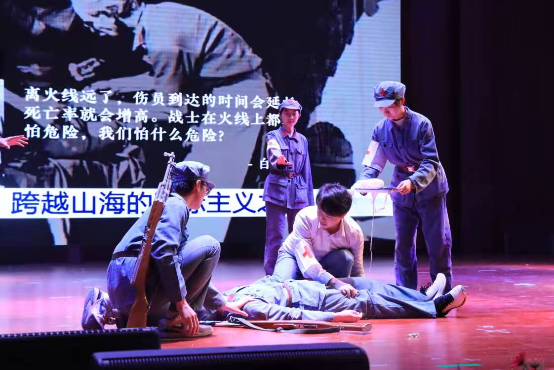 展示环节中,各团支部通过PPT讲解、歌曲、情景剧等丰富形式,紧扣主题,生动展现了在思想引领、学风建设和特色活动等方面的成果。演出情感真挚、形式鲜活,将抗战精神的传承与医学生的担当紧密结合,现场气氛庄重而热烈。